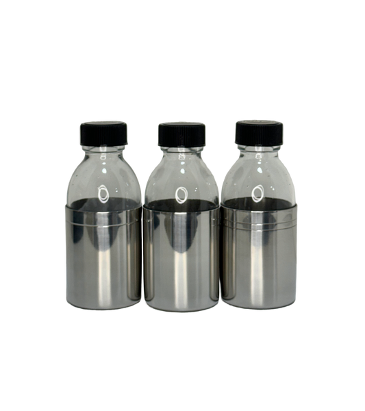 Juego de 3 crismeras con estuche de cuero