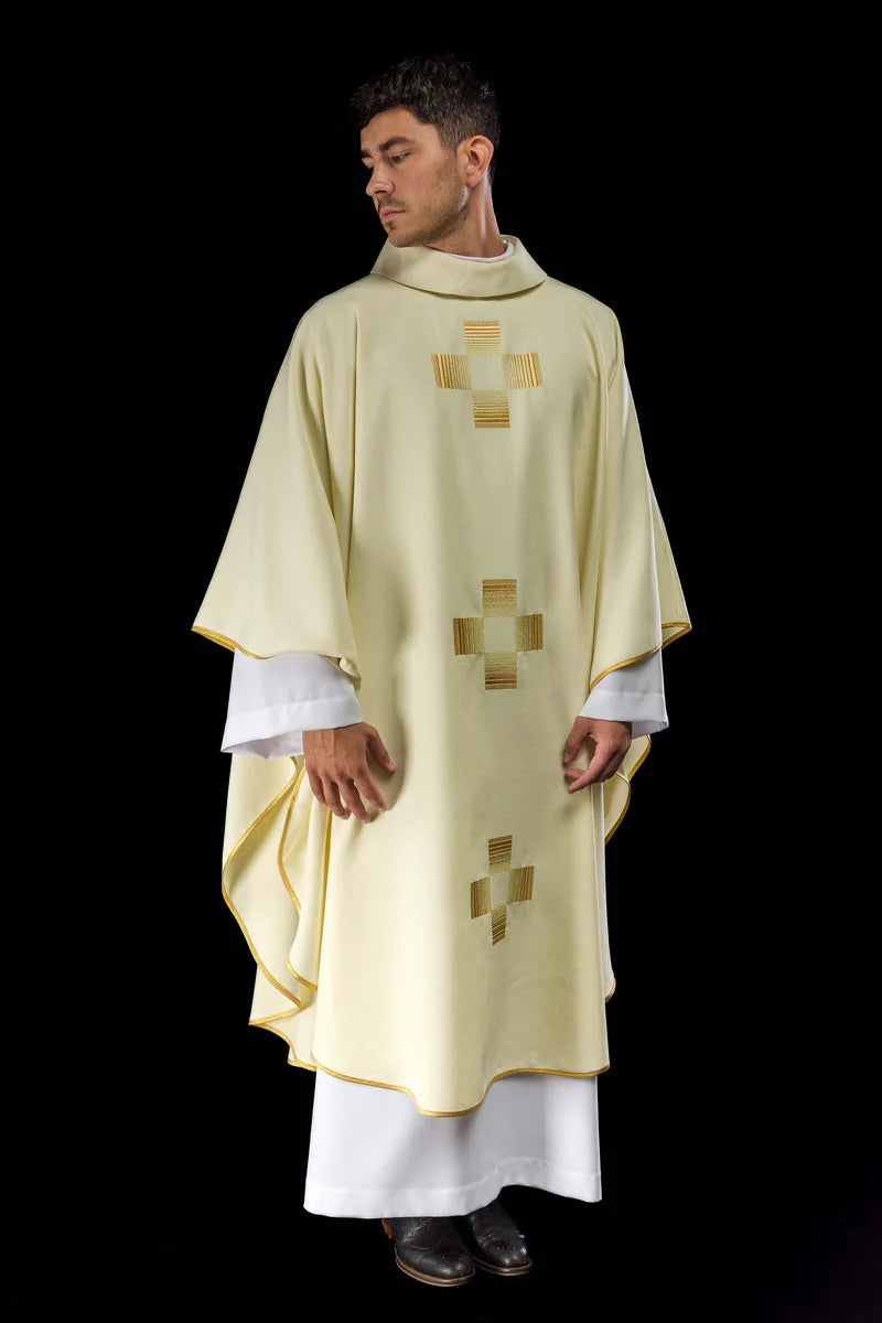 ¡Luce elegante y profesional con nuestra exclusiva casulla polaca bordada! Hecha de 80% poliéster y 20% lana para mayor comodidad y durabilidad. La ornamentación bordada y el diseño polaco hacen que esta casulla sea perfecta para cualquier sacerdote. ¡Haz una impresión duradera con esta pieza de calidad!