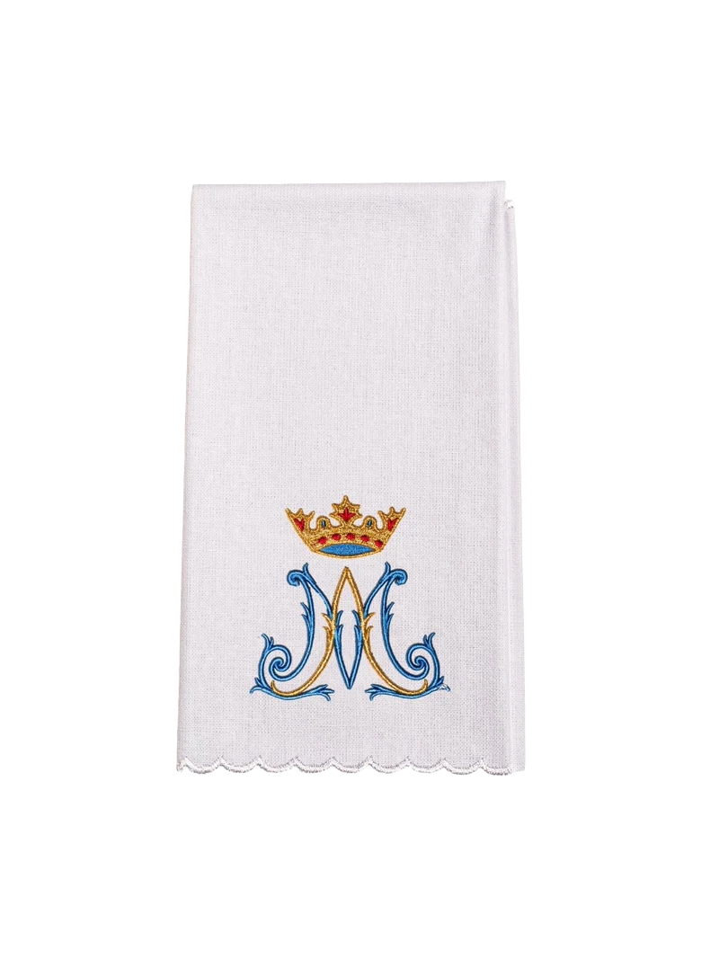 - Manutergio - Este producto está confeccionado con tela de algodón de aproximadamente 40 cm de largo y 25 cm de ancho. Está decorado con una cruz lisa o convexa y los bordes están ribeteados con una ola bordada.